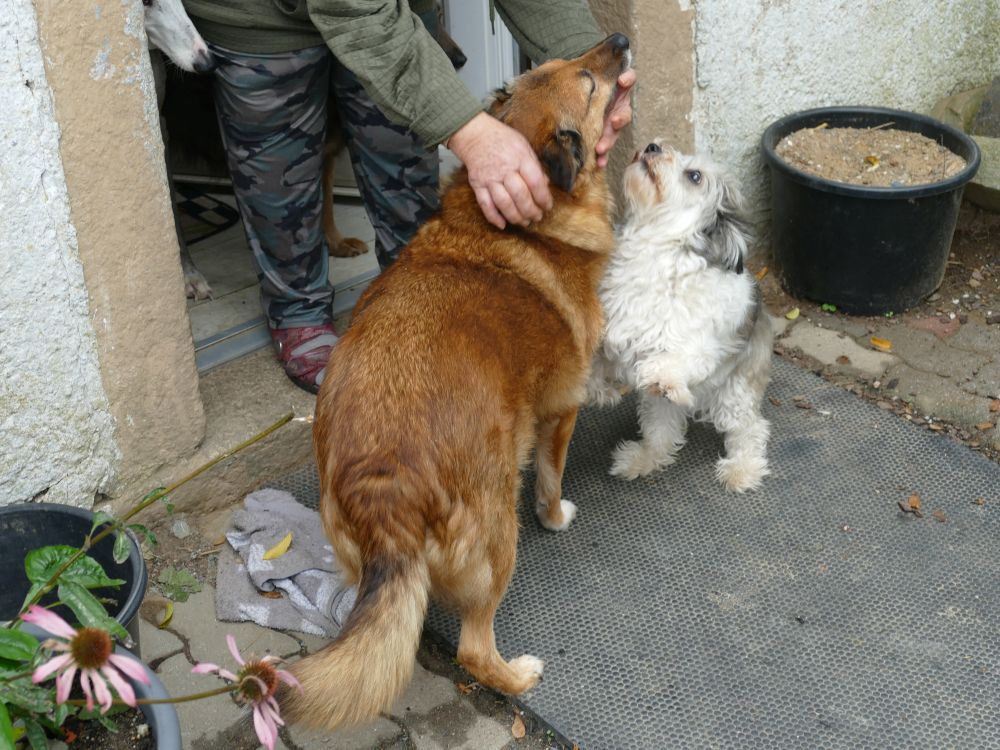 Am Donnerstag mussten wir Abschied von unserer Silvie, 16 Jahre nehmen. Sie kam vor 15,5 Jahren zu uns. Silvie schien einen ganz besonders aufmerksamen Schutzengel gehabt zu haben. In Rumänien, wo sie herstammt, ist es an der Tagesordnung, dass Privatpersonen Welpen aussetzen und so ihrem Schicksal überlassen. Viele von ihnen werden überfahren, misshandelt, verhungern, eingefangen ….. Unser „Knopfauge“ saß absolut bewegungslos und starr vor Angst in hohem Gras und es war purer Zufall, dass eine Tierschützerin sie entdeckte. Nachdem sie geimpft und medizinisch vorbereitet war, durfte sie zu uns kommen und wir sind jeden Tag froh um dieses unglaublich lebensfrohe und süße Mädel. Wir hatten einmal versucht sie zu vermitteln, sie ist psychisch völlig zusammen gebrochen und hat sich vollkommen zurück gezogen. So kam sie wieder zu uns zurück und durfte die ihr ganzes Leben bei uns in unserer Hausgruppe leben. Wir vermissen dich so sehr.