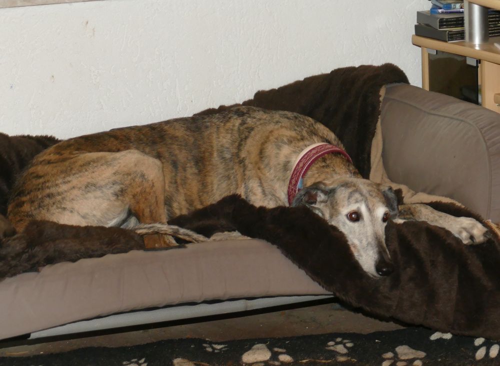 Guten Morgen liebe Tierfreunde, tja, die langen Beine der Galgos hat schon seine Vorteile: Sie sind viel schneller und oft ergattern sie dadurch die besseren Schlafplätze. Aber ich bin geduldig, irgendwann müssen sie aufstehen. Ich wünsche euch einen schönen Tag, eure Frieda.
