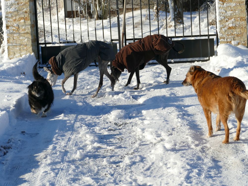 Guten Morgen liebe Tierfreunde, so wir haben Lilli aus der Patsche geholfen und jetzt gibt es etwas Schneeaction. Und dann gibt es ein gemütliches Frühstück. Wir wünschen euch einen schönen Sonntag, eure Kira, Lilli und Lotte.