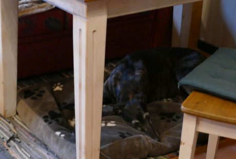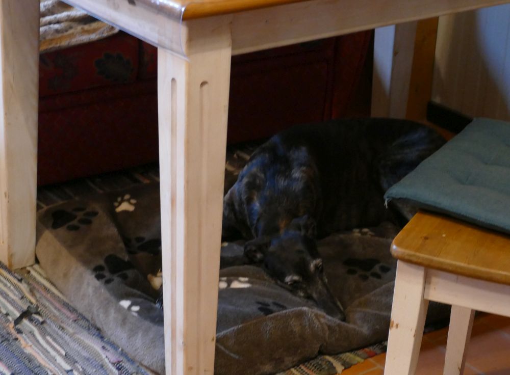 Guten Morgen liebe Tierfreunde, psst, hier unten. Ich habe mich bestmöglich getarnt, vielleicht übersieht mich Frauchen, wenn wir raus müssen. Ich wünsche euch einen schönen Samstag, eure Chavi.