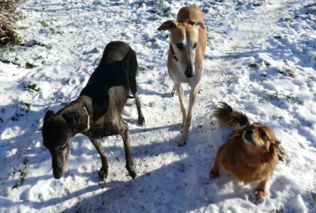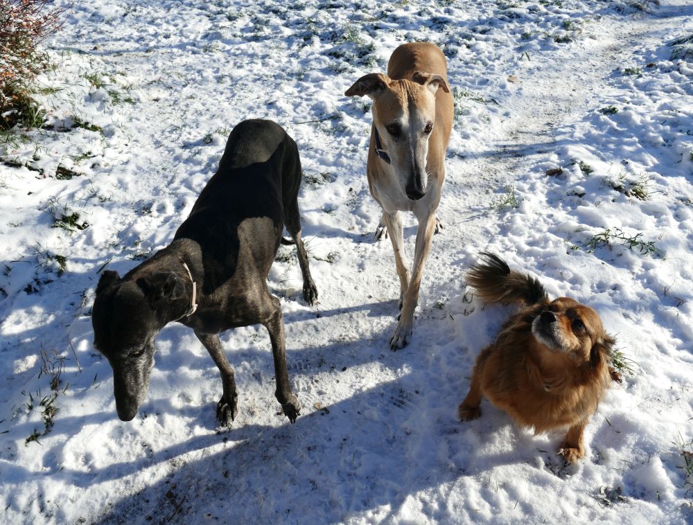 Guten Morgen liebe Tierfreunde, und wann dürfen wir wieder ins Haus Frauchen? Einmal kurz Geschäftchen machen, reicht doch vollkommen aus um im Winter draußen zu sein. Wir wünschen euch einen entspannten Tag, eure Chavi, Seraphin und Lotte.