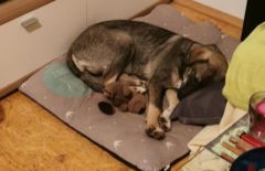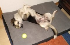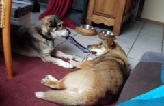 Es hat zwar etwas gedauert, aber es hat sich mehr als gelohnt: Unser Mutter-Tochter-Duo Madonna, jetzt Donna und Mandala, jetzt Lilli haben ein gemeinsames Zuhause gefunden. ♥♥♥ Wir hatten ja berichtet, was für ein Schicksal Madonna und Mandala getrennt und wieder bei uns zusammen geführt hat. Eine Freundin von Georgiana rettete die kleine Mandala aus einem „Zigeunerdorf“, wo schrecklich mit den Hunde umgegangen wird und Welpen teilweise auf grausamste Weise so gar von Kindern gequält und getötet werden. Zur selben Zeit begann Georgiana in diesem Dorf mit ihrer Kastrationsaktion von Privathunden. Unter anderem war auch Madonna eine von ihnen. Der Besitzer ließ Madonna herum streunen und kümmerte sich nicht um sie. Georgiana konnte ihn deshalb überzeugen, sie abzugeben. Madonna hatte vor kurzem auch noch Welpen, doch diese waren nicht auffindbar. Bis zu ihrer Ausreise war Madonna bei Georgiana untergebracht und die kleine Mandala bei der Freundin, die sie gerettet hatte. Sie traten dann die Reise zu uns auf den Tierschutzhof an. Insgesamt kamen 13 Hunde bei uns an, die in verschiedenen Gehegen untergebracht wurden. Madonna kam zusammen mit zwei Hunden in ein Gehege und Mandala in das Gehege gegenüber. Doch es geschah etwas, das wir so noch nicht erlebt hatten: Madonna versuchte mit aller Kraft aus ihrem Gehege zu entkommen. Sie biss in den Zaun und hatte die ganze Zeit nur das Gehege gegenüber im Blick. Die kleine Mandala im Gehege gegenüber lief weinend am Zaun entlang. Da wir nach der Ankunft unsere neuen Hunde erstmal beobachten und auch wenn nötig manche in ein anderes, passenderes Gehege umsetzen, beschlossen wir Mandala zu Madonna zu setzen. Es war unglaublich wie sich die beiden freuten, spielten, herum tobten und liebkosten. Zu diesem Zeitpunkt wussten wir nicht, warum die Bindung der Beiden so innig ist und beide unzertrennlich scheinen. Jetzt wissen wir es. Georgiana zeigte ihrer Freundin die Videos, die wir ihr geschickt hatten und sie kamen über Madonna und Mandala ins Gespräch und wo sie jeweils die Beiden gerettet haben. Und es stellte sich heraus, das Mandala Madonnas Welpe ist!!!!Die Beiden haben so eine innige Bindung zueinander, so dass wir es zumindest versuchen wollten, sie zusammen zu vermitteln. Und jetzt sind sie bei einem ganz lieben Hundefrauchen eingezogen. So ein wunderschönes Happy End bzw eigentlich ein Happy Beginning für Mama Madonna und Tochter Mandala. Wir wünschen euch eine lange glückliche Zeit zusammen.