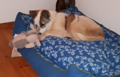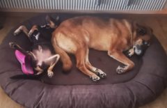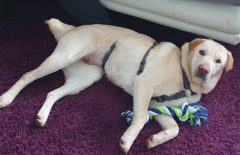 Riley wurde angefahren am Straßenrand gefunden, wo er wahrscheinlich schon zwei Tage lag. Er konnte sich nicht mehr bewegen. Durch eine OP erholte er sich soweit, dass er wieder laufen konnte, auch wenn etwas anders als „normale“ Hunde. Wir freuen uns über alle vermittelten Schützlinge, doch es gibt Hunde für die freut es uns besonders. Wie für Riley, durch seinen Unfall hat er einfach eine Gehbehinderung. Doch dies schreckte seine neue Familie nicht, da sie ihren Schmusebub so lieben wie er ist. Wir wünschen euch eine lange glückliche Zeit zusammen.